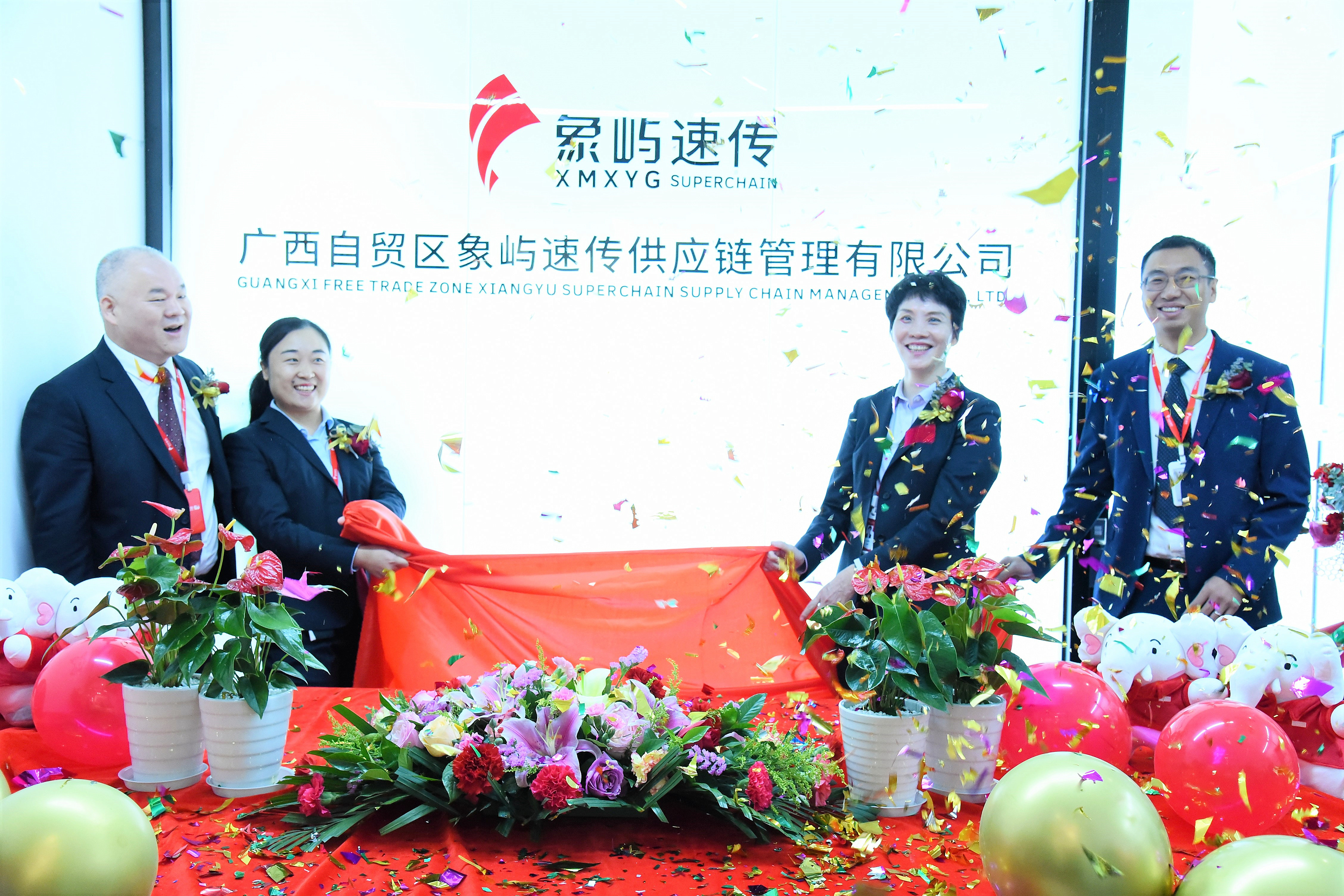 象嶼股份黨委委員、副總經理、象嶼速傳總經理肖靜勤,象嶼股份物流總監(jiān)、象嶼速傳副總經理孫剛,廣州象嶼、廣州速傳總經理杜靜靜,象嶼速傳西南物流事業(yè)部、廣西象嶼速傳副總經理伍韜等為公司揭牌。
