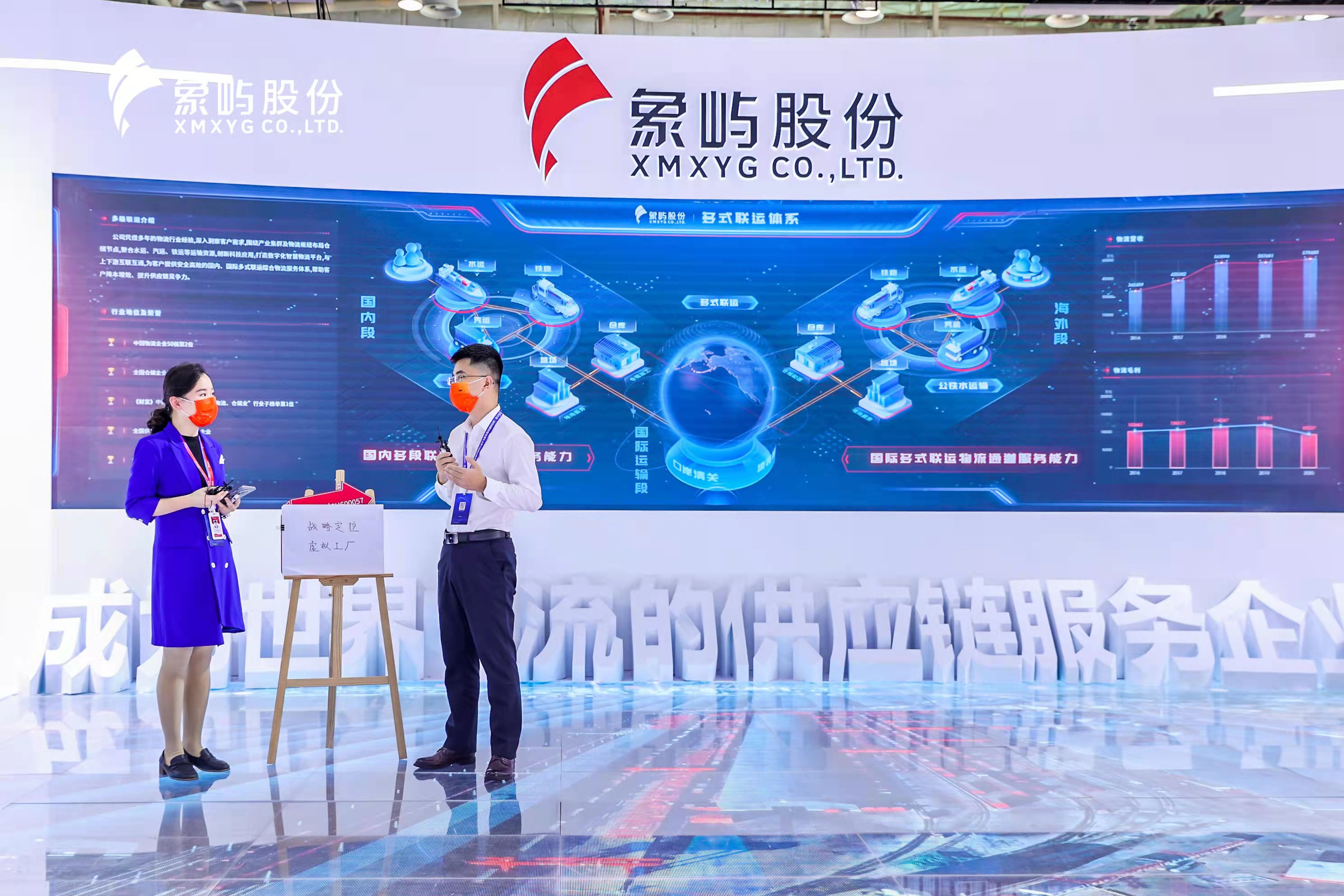 天屏地屏主屏三屏互動, 全景地屏展現(xiàn)了象嶼股份農(nóng)產(chǎn)品、能源化工、金屬礦產(chǎn)供應(yīng)鏈板塊的業(yè)務(wù)亮點(diǎn),通過東北象嶼糧倉、陜西場站、印尼不銹鋼冶煉項(xiàng)目等典型項(xiàng)目實(shí)景展示,進(jìn)一步詮釋象嶼業(yè)務(wù)模式及國際化發(fā)展!